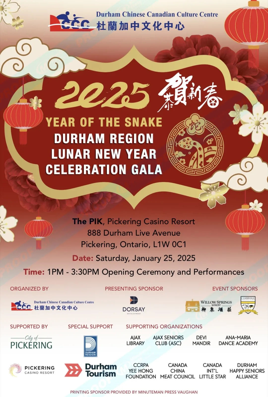 北美都市脉搏 共襄盛举迎新春 —— Durham区春节 《共襄盛举迎新春 —— Durham区春节联欢会邀您同庆》亲爱的Durham区和大多伦多地区的朋友们:岁序更新,金蛇献瑞。2025农历乙巳蛇年即将到来。在这充满... 阅读(3042)标签: Durham 春节联欢会 迎新春